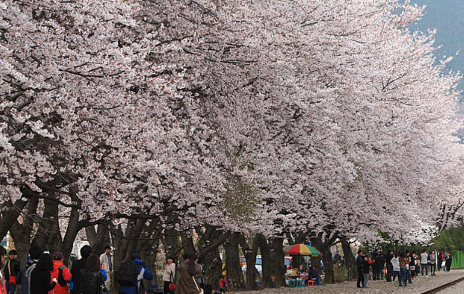 벚꽃 시즌에는 도로가 통제되어 방문객들이 가까이에서 벚꽃을 감상할 수 있습니다. 도로는 상단과 하단의 두 부분으로 나뉘며 방문자는 하나 또는 둘 다를 탐색할 수 있습니다. 윗부분은 사람이 더 많고 가까운 화개산의 전망을 제공하며, 아랫부분은 더 조용하고 더 평화로운 경험을 제공합니다.