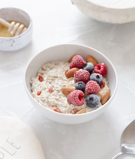 오트밀은 아침 내내 천천히 에너지를 방출하는 영양가 있는 통곡물입니다. 섬유질이 풍부하여 소화를 돕고 안정적인 혈당 수치를 유지하는 데 도움이 됩니다. 과일, 견과류, 씨앗 또는 추가 맛을 위해 꿀 이슬비를 추가하여 오트밀을 맞춤화할 수 있습니다.